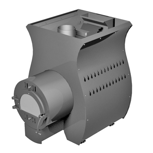 Печь имеет окраску кремнийорганической краской и от других моделей отличается самым маленьким размером и небольшой дверцей со стеклом. Данная печь хорошо подходит для парных помещений объемом от 4 до 12 кубов. Предпочтительна для небольших парных помещений в южных регионах России. В северных регионах при соблюдении хорошего утепления здания. Печь с двумя парогенераторами конвекционного типа. Дополнительная подача воздуха для дожига газов выводит печь на лучшие чистые режимы. Колпак, которым оборудована печь позволяет дожечь газы не в дымоходе, а еще в печи, из-за чего значительно снижается температура дымохода и исключается его засаживание. Стекло в двери позволяет не только наблюдать за живой игрой огня, но и достигать лучшей регулировки горения дров. За счет этого печь наиболее экономична и эффективна. Великолепная способность создания легкого пара ставит эту печь на высокий уровень по созданию банных паровых режимов.