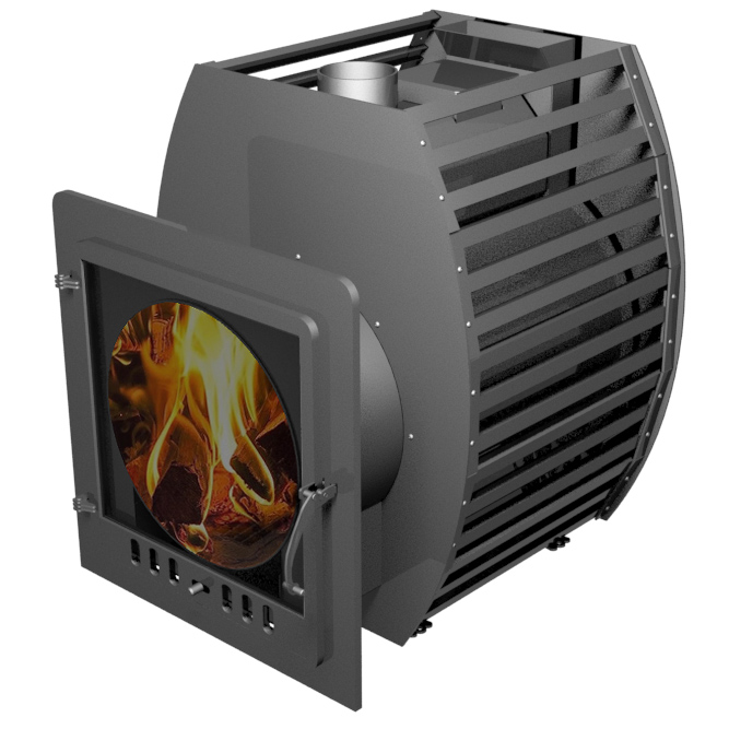 Отличается от своей предшественницы большими размерами и большим порталом со стеклянной дверцей 30". Три парогенератора и емкая каменка имеют большой парогенерирующий потенциал и работают на протяжении всего парения - печь дает рекордное количество качественного пара. Обсыпка топки камнем создают мягкие режимы русской бани как у кирпичных печей.